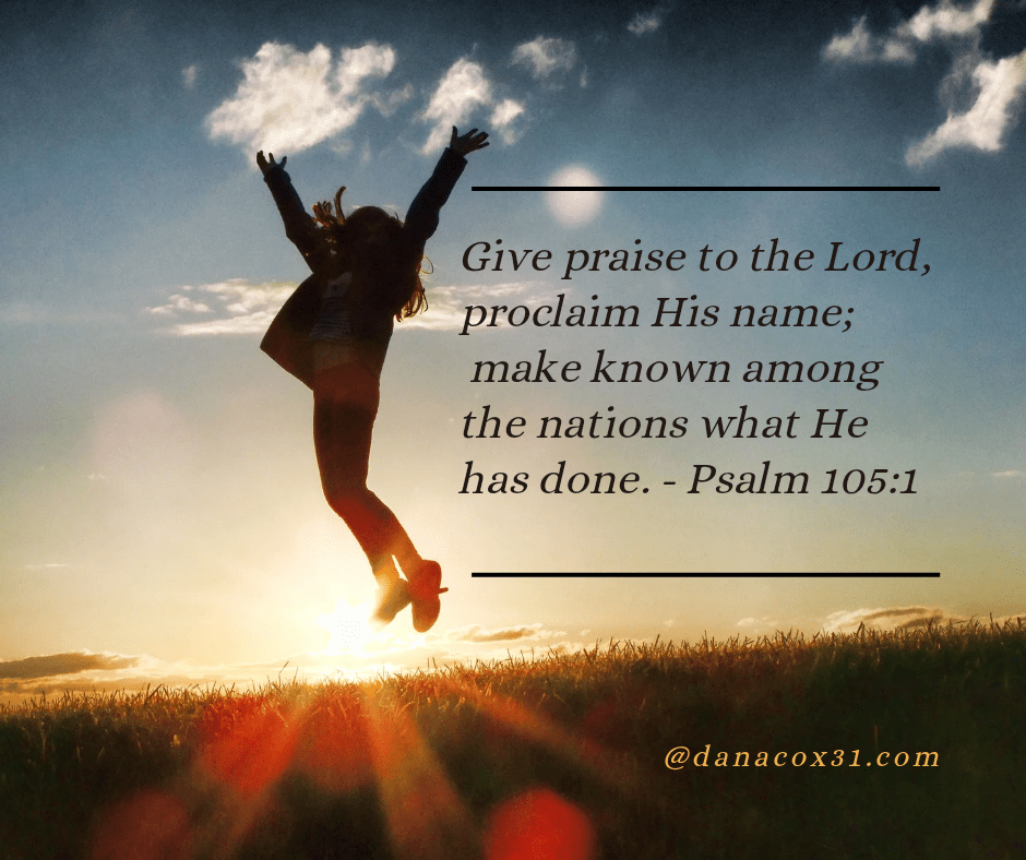 This morning’s verse of the day on the You Version Bible app is Psalm 105:1. (I encourage you to read that psalm in its entirety, but I’m just focusing on that first verse, too, this morning.) I felt like the Spirit asked me to. I’m sure I’m not the only one who could use the reminder.