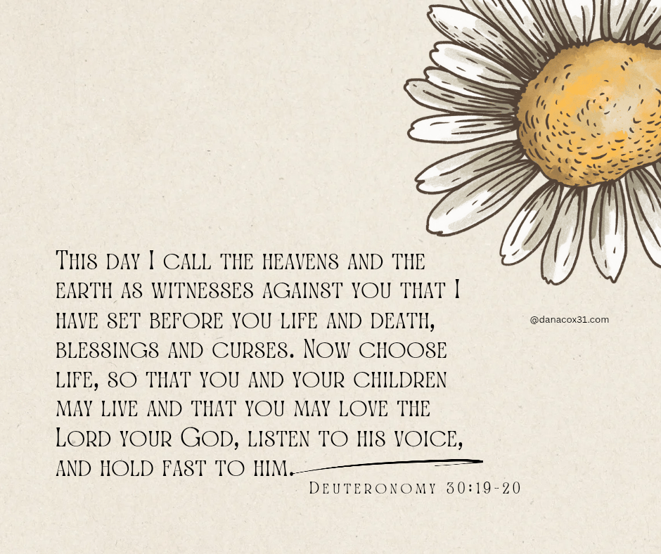 In Deuteronomy 30, we find a clear challenge from God. Verses 19 and the first part of 20 say, “This day I call the heavens and the earth as witnesses against you that I have set before you life and death, blessings and curses. Now choose life, so that you and your children may live and that you may love the Lord your God, listen to his voice, and hold fast to him.” That choice, life over death, blessing over curse, is not a one-time decision, but a daily posture of the heart… and it begins in our minds.